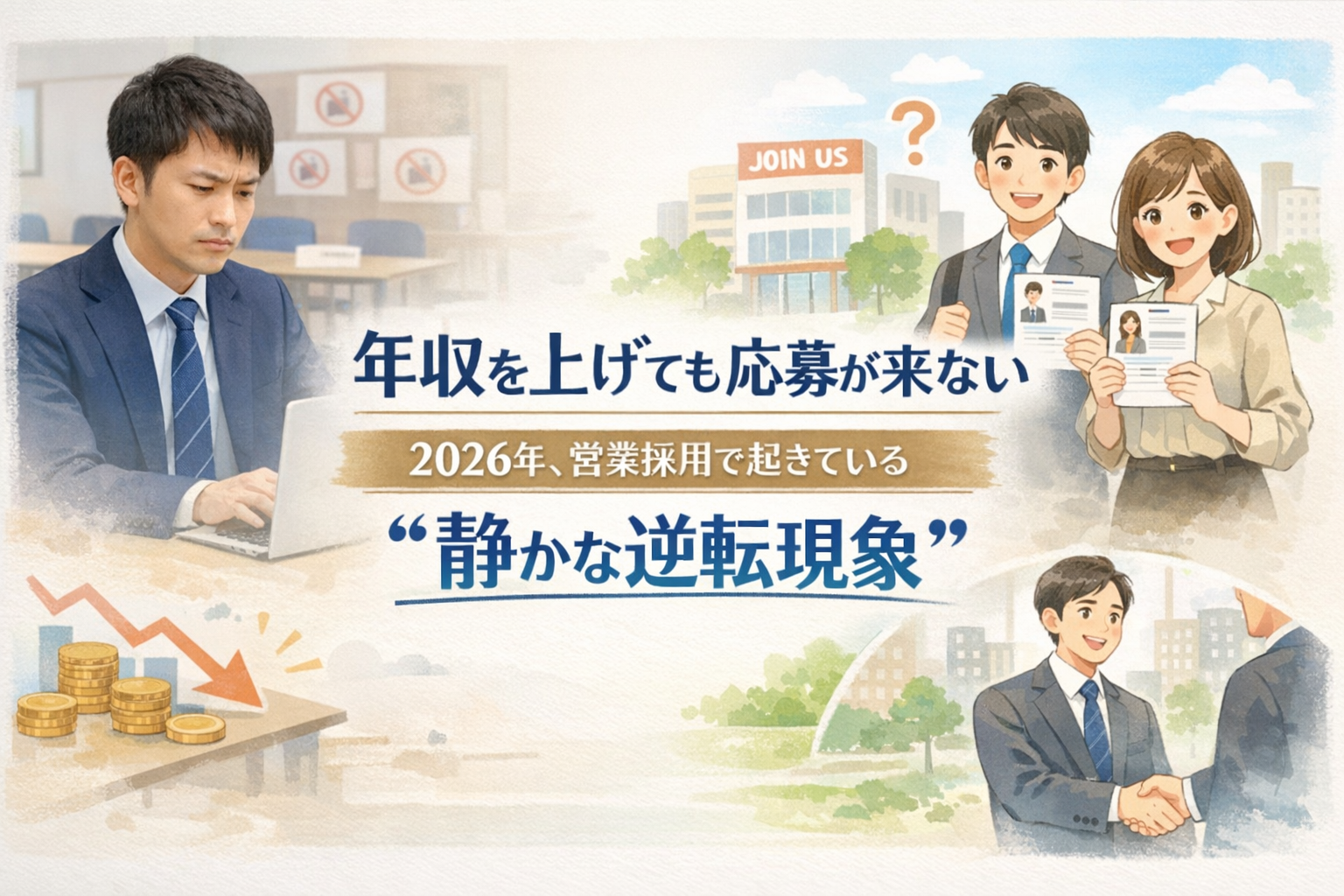 営業職の年収は高まっていますが、それにも関わらず応募が減っている現象が起きています。このブログでは、2026年に向けて営業職の採用に関するトレンドや、求職者の価値観の変化、企業側の戦略について考察します。一緒にこの「静かな逆転現象」の背後にある要因を読み解いていきましょう。