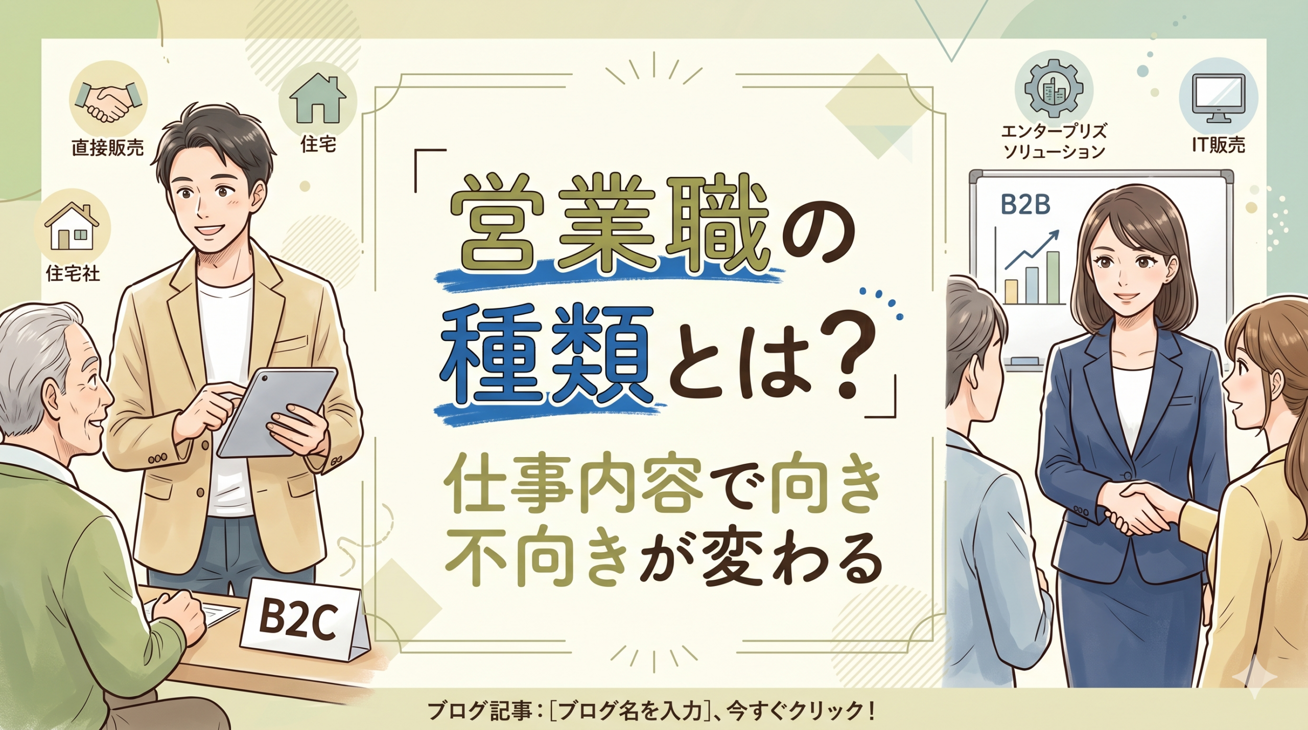 営業職は多様な種類があり、それぞれ異なるスキルや特性が求められます。自分に合った営業職を見つけることで、より充実したキャリアを築くことができるでしょう。本記事では、営業職の定義から具体的な種類、そして向き不向きのポイントを詳しく解説します。